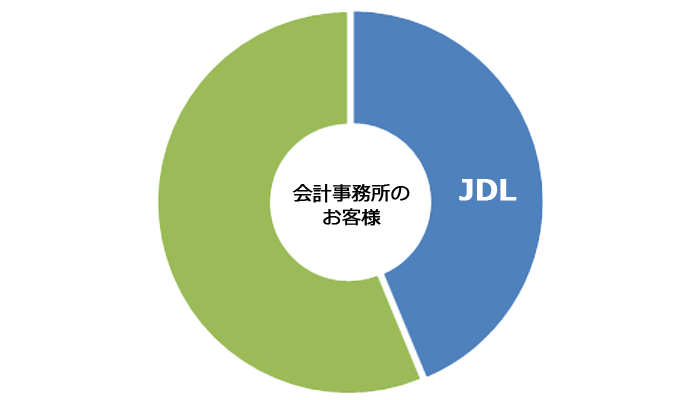 32,000件※といわれる会計事務所の内、JDLのお客様は14,000件。 現在は、更なる市場拡大を推し進めるとともに、新規獲得したお客様に当社のシステムをより高度にご利用いただくための活動にも注力しています。